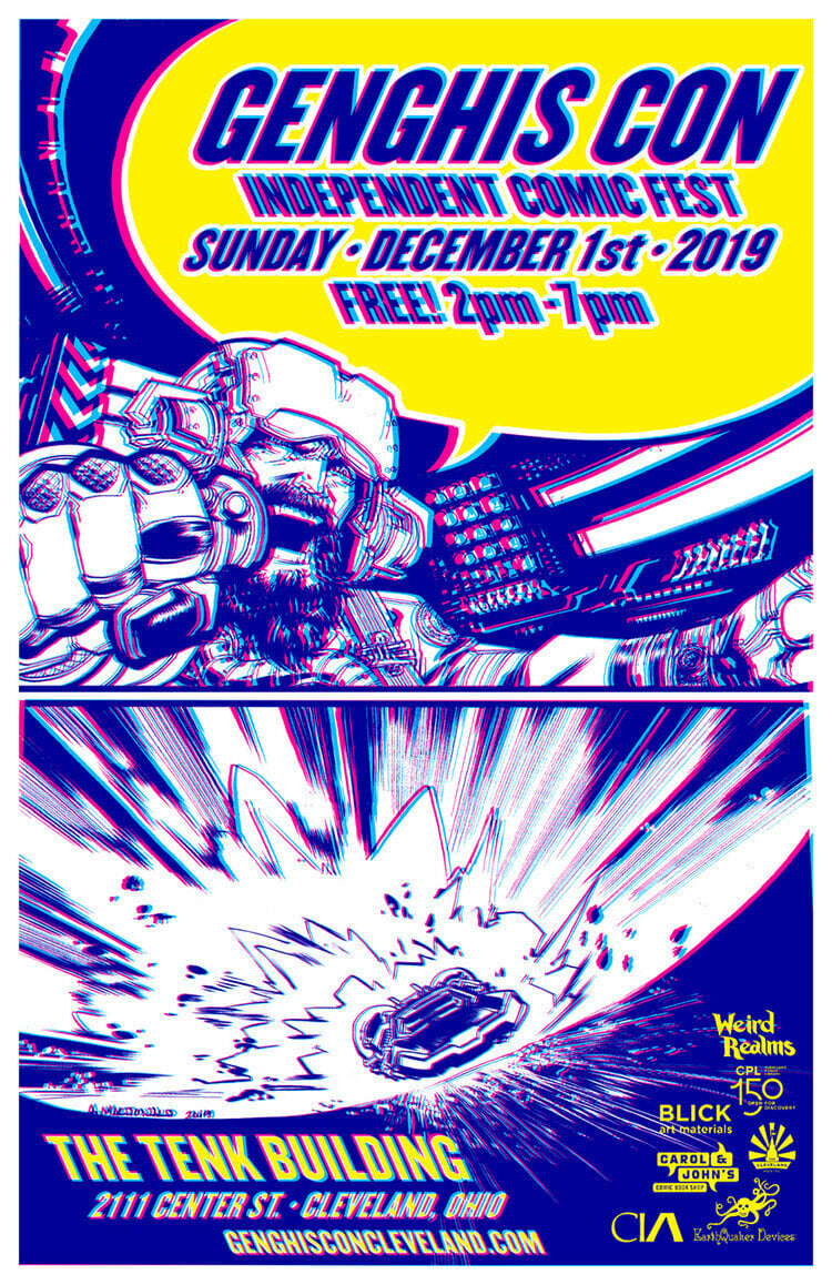 Relive the good ole days of Genghis Con with this trippy 2019 poster design by Andy MacDonald. it works well with 3D glasses!